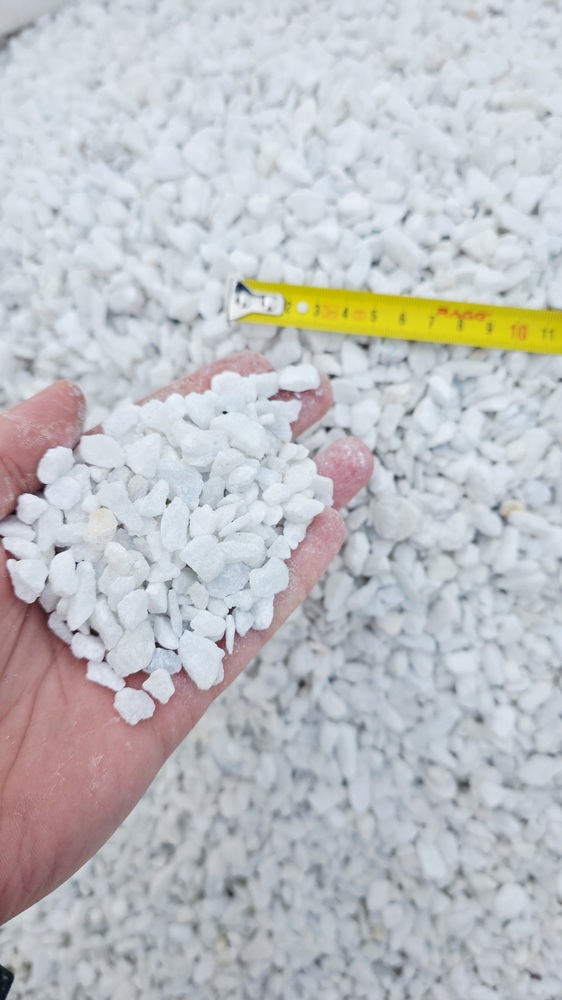 Описание: Щебень мраморный белый дробленный. Подойдёт для ландшафтного дизайна, отсыпки придомовых территории, производства бетонных изделий под шлифовку. Для отсыпки 1кв.м при толщине слоя 40-50мм нужно 50-60кг щебня